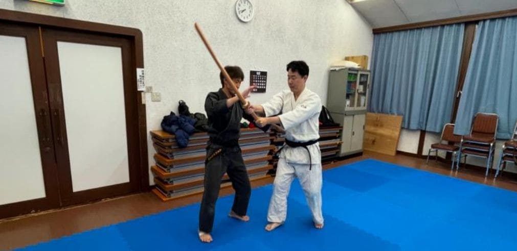 刀や棒などの武器を持つ相手に対応する練習です。