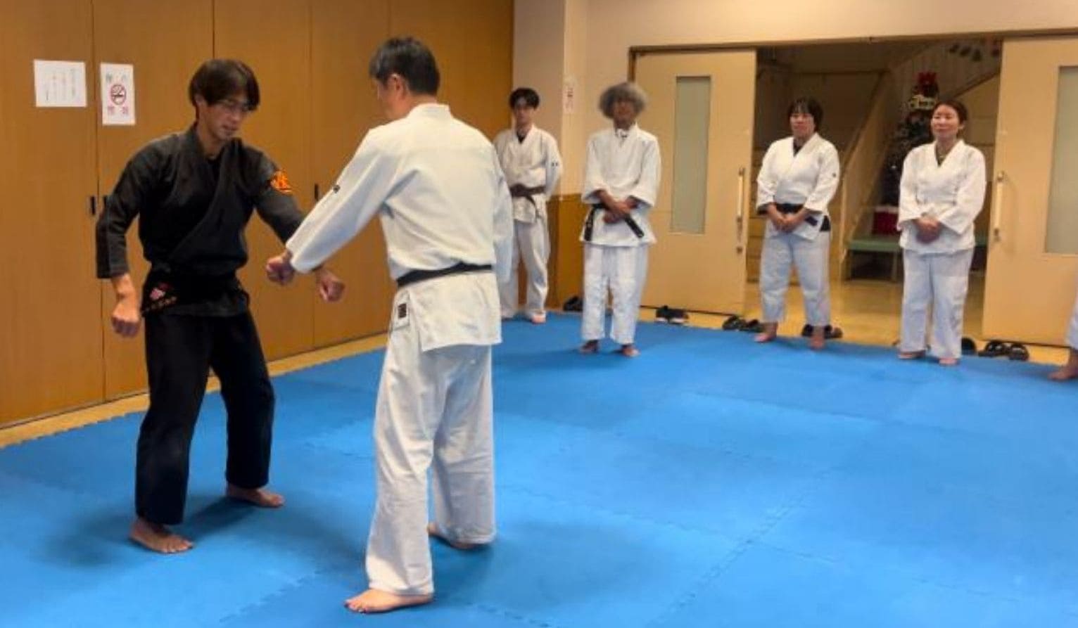 護身術や合気道の基礎を徹底的に反復します。
